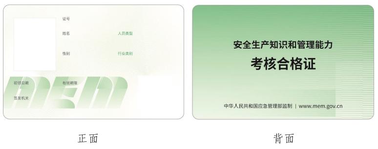 新版证书(式样附后)在借鉴其他证书样式基础上,有几个方面的变化:一是微调原证书版面布局和内容。调整了证书颜色和布局,将正面图案修改为应急管理部英文缩写“MEM”,背面监制单位修改为“中华人民共和国应急管理部”;将电子签章修改为“签发机关”,增加了“二维码”。二是推行电子证书。实体证书为PVC卡,根据个人是否需要来制发;电子证书在信息系统自动生成,是实体证书的线上形态,与实体证书一一对应、唯一映射、状态相同、功能相通,具有同等法律效力;忘带或丢失实体证书,可以上网查询并打印电子证书。三是强化查询和防伪功能。在安全合格证和特种作业操作证证书的正面增加可利用手机扫描获取查询证书信息的二维码;取消特种作业操作证中的IC卡芯片。