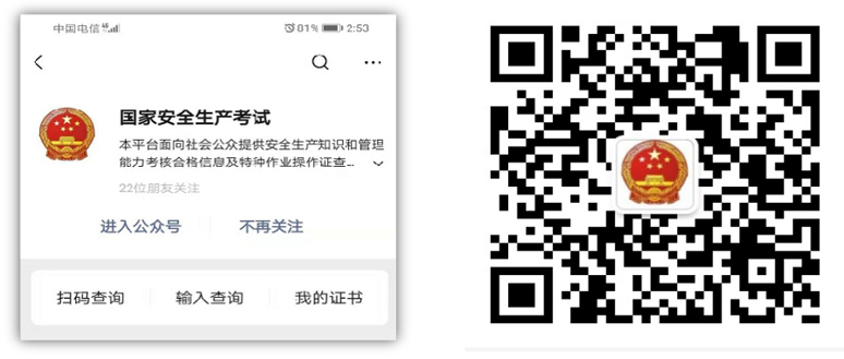 《通知》强调,所有证书只能通过应急管理部政府网站进入“特种作业操作证及安全生产知识和管理能力考核合格信息查询”系统或登录官方微信公众号(国家安全生产考试,附后)查验真伪。各地可链接查询地址,禁止任何组织或个人自建证书查询平台或系统。